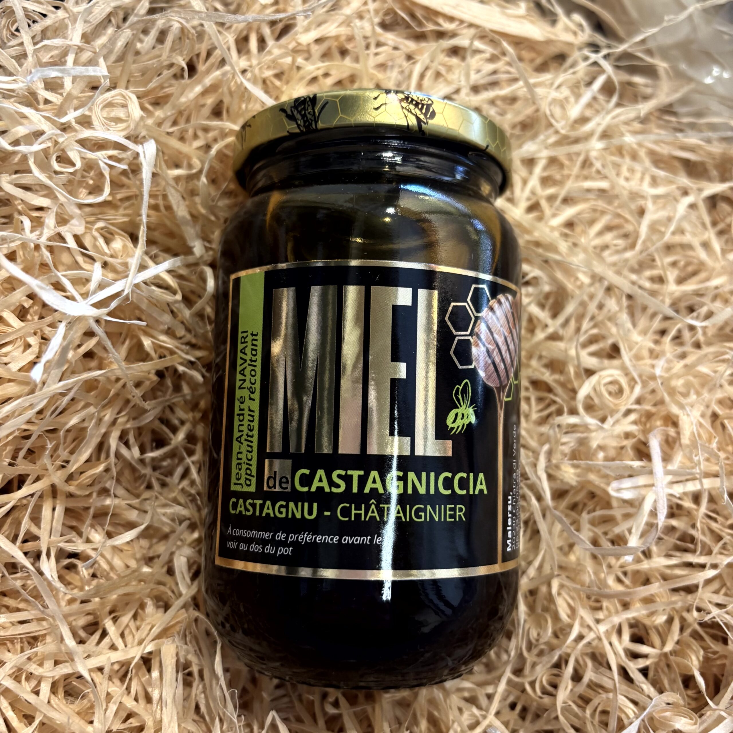 Le Miel de Châtaignier de Jean-André Navari met à l’honneur cette spécialité emblématique de la Corse. Ce miel se distingue par sa robe sombre et son goût puissant, à la fois boisé et légèrement amer, qui séduit les amateurs de miels de caractère. Riche en minéraux et en arômes complexes, il accompagne parfaitement les fromages corses, les infusions ou les recettes sucrées-salées.